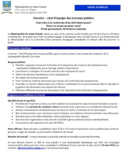 Municipalité de Saint-Claude > Nouvelles > Non classé